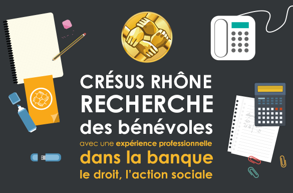 L'association CRÉSUS RHÔNE, membre de la Fédération CRÉSUS, recherche des bénévoles (6) pour informer, conseiller et accompagner ses bénéficiaires en difficultés financière et leur apporter des solutions adaptées (accompagnement budgétaire, dossier de surendettement Banque de France, médiation bancaire, vérification des créances...).